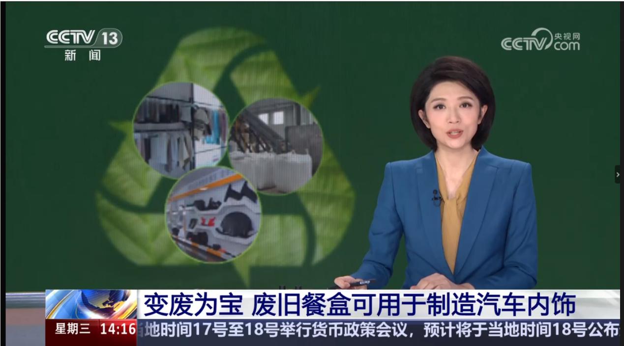 9月18日下午兩點,CCTV13新聞頻道播放了長達10分鐘的再生塑料相關(guān)新聞,報道了我國在廢舊塑料回收、廢舊餐盒做成速干衣、廢舊餐盒做成汽車配件方面的高值化利用。
